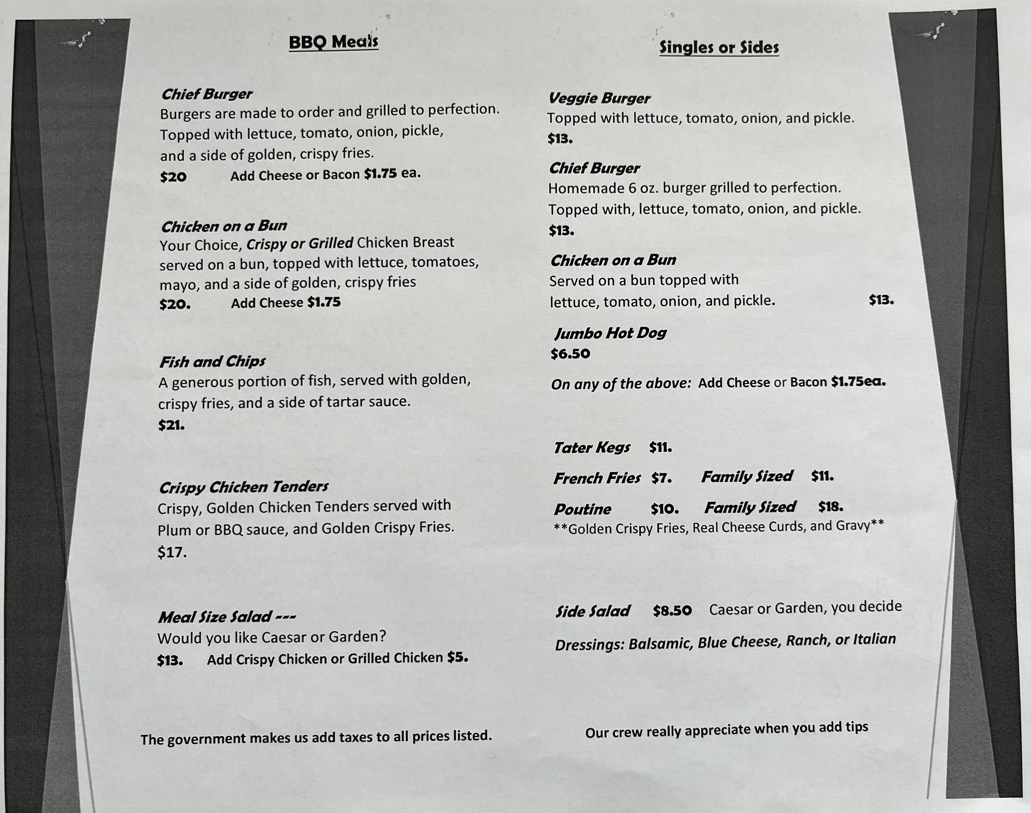*All prices subject to applicable taxes & gratuity*